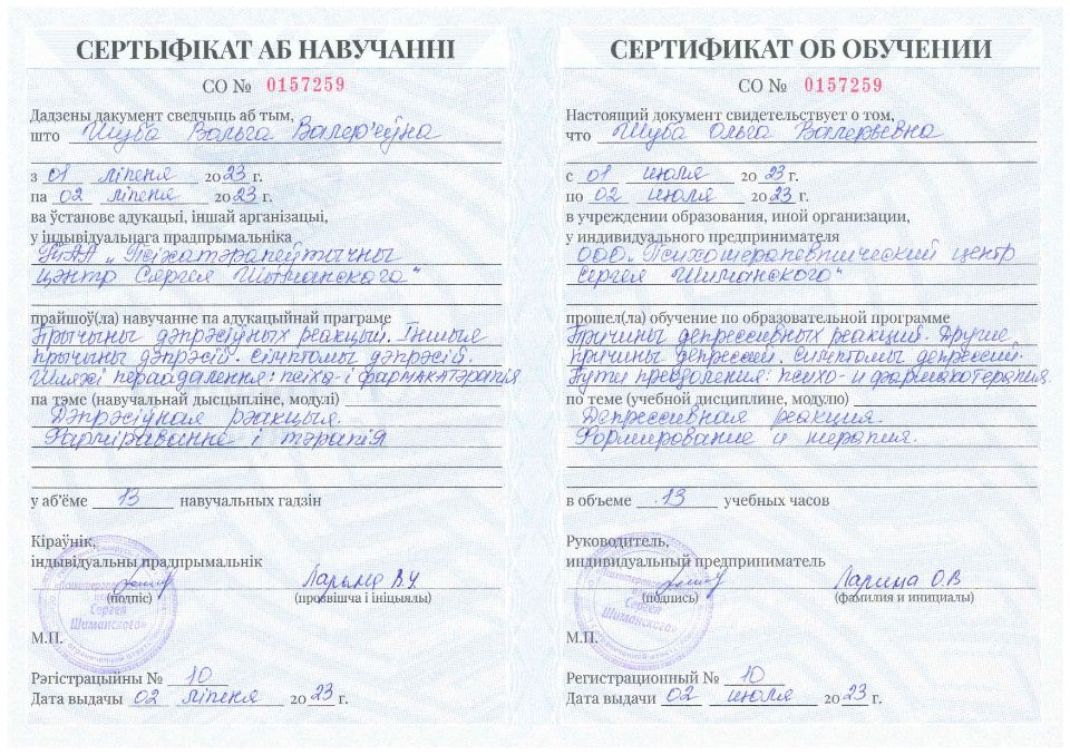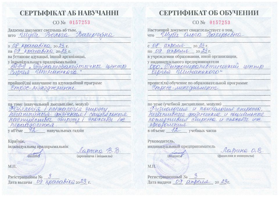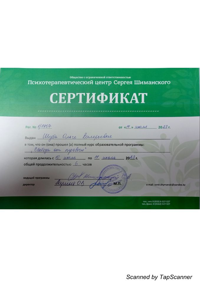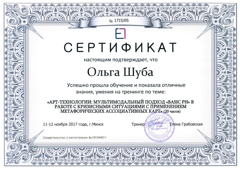 ИП Шуба Ольга Валерьевна,УНП 790453271, свидетельство о государственной регистрации № 0766264, выдано Минским райссполкомом, дата регистрации 21.01.2008
